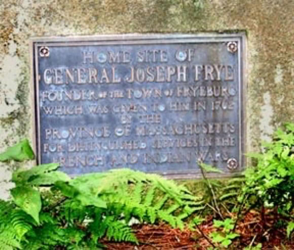 Historical marker at the Frye Homestead off Rt 5 in Fryeburg