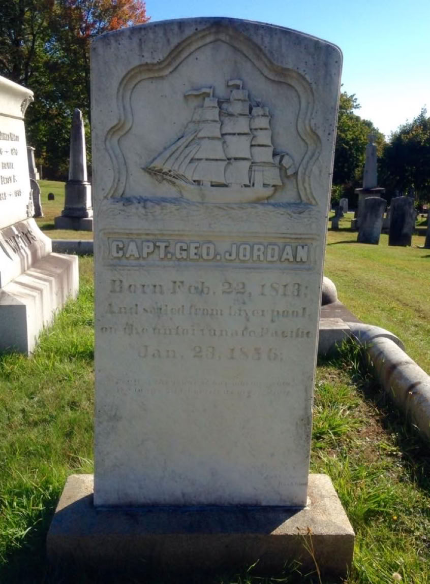 Captain George Jordan, born in Thomaston in 1813, was the son of Ebenezer Jordan, also a ship captain. In fact, there have been many Jordan captains in Thomaston and in Maine and quite a few were named George making this man hard to track. He married Betsy Masters of Bath and had three children. He may be the George Jordan who captained the Midas out of Rockland, and he may have sailed to California during the Gold Rush. We do know that late in 1855 he sailed to Coxhaven, England where he sold his ship. Jordan then booked passage home to America on the famous steamship Pacific. It was a fateful trip.